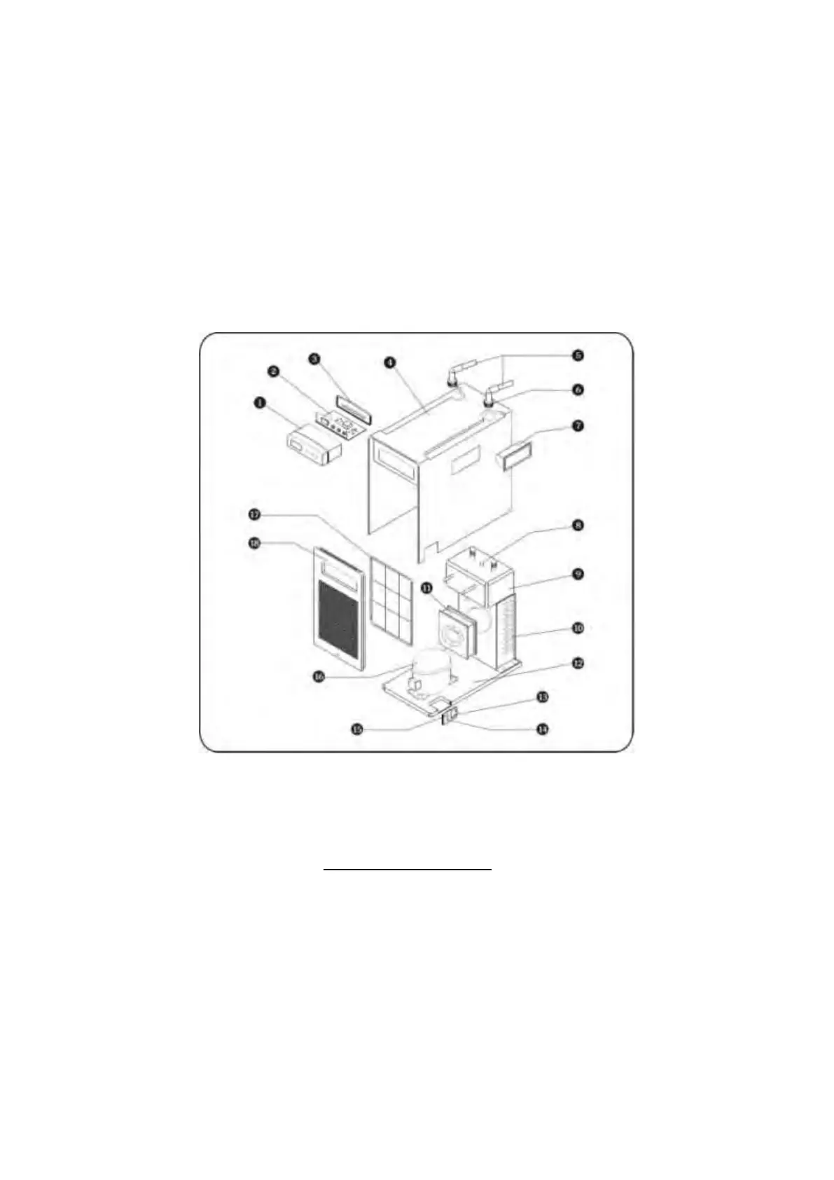 Ventilator 12. Basis 13. Schalter 14. Büchse 15. Sicherung 16. Kompressor 17.