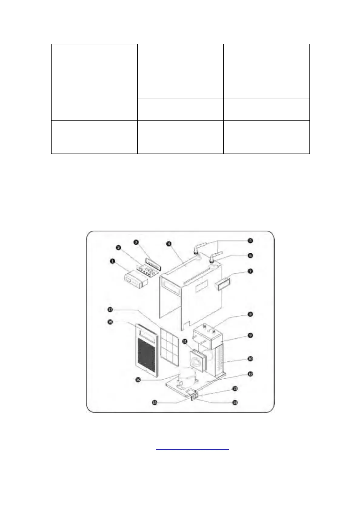 14.Prise électrique 15.Fusible 16.Compresseur 17.Filtre 18.Grille frontale