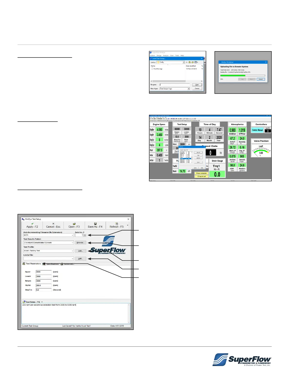 WinDyn preferences can be set up to quickly prepare the system for testing. To bring up the Test Setup