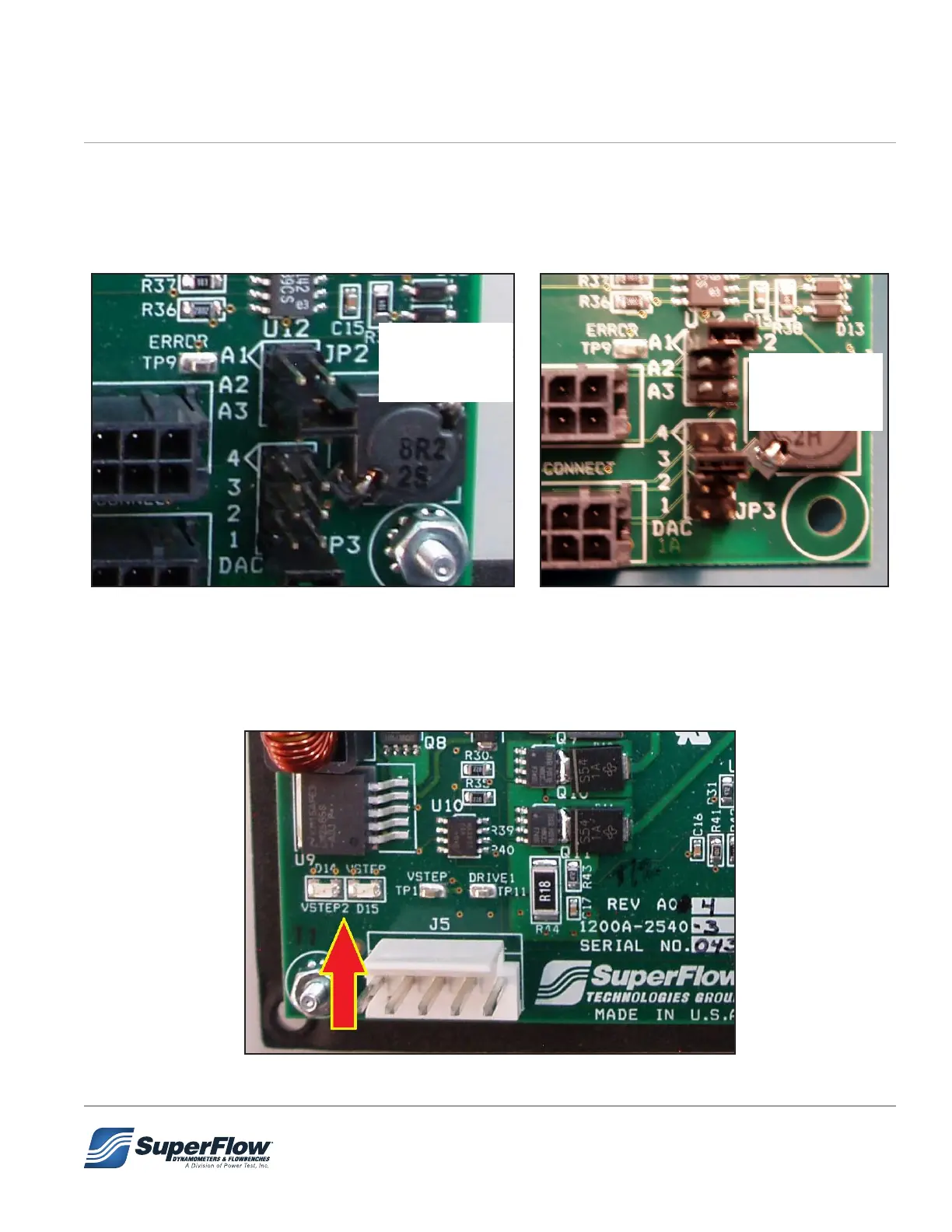 have to be sent to SuperFlow for repair. See photo below for the location of the LEDs on the boards.
