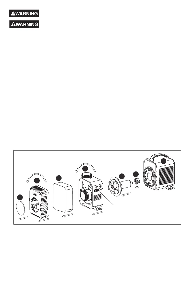 5. Slide locking mechanism on the volute plate (D) to the open location.