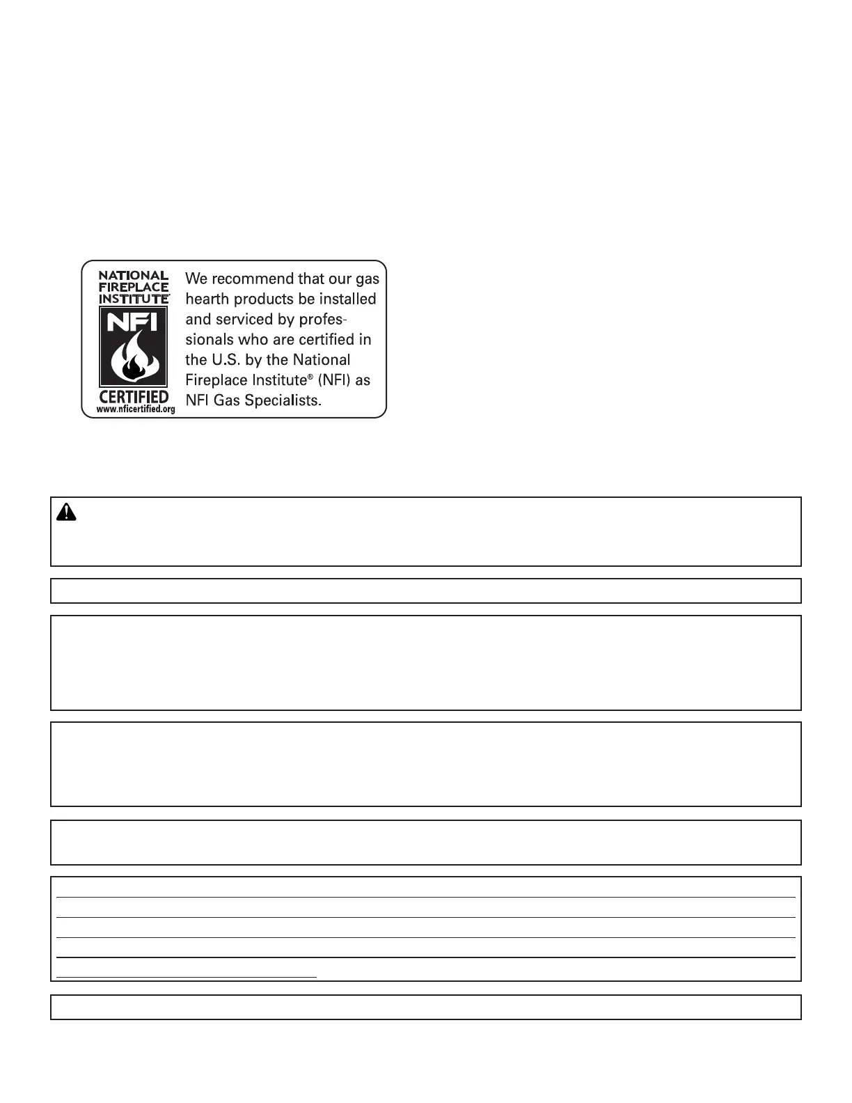 This fireplace may not be installed in manufactured (mobile) housing constructed to HUD standards. The fireplace
