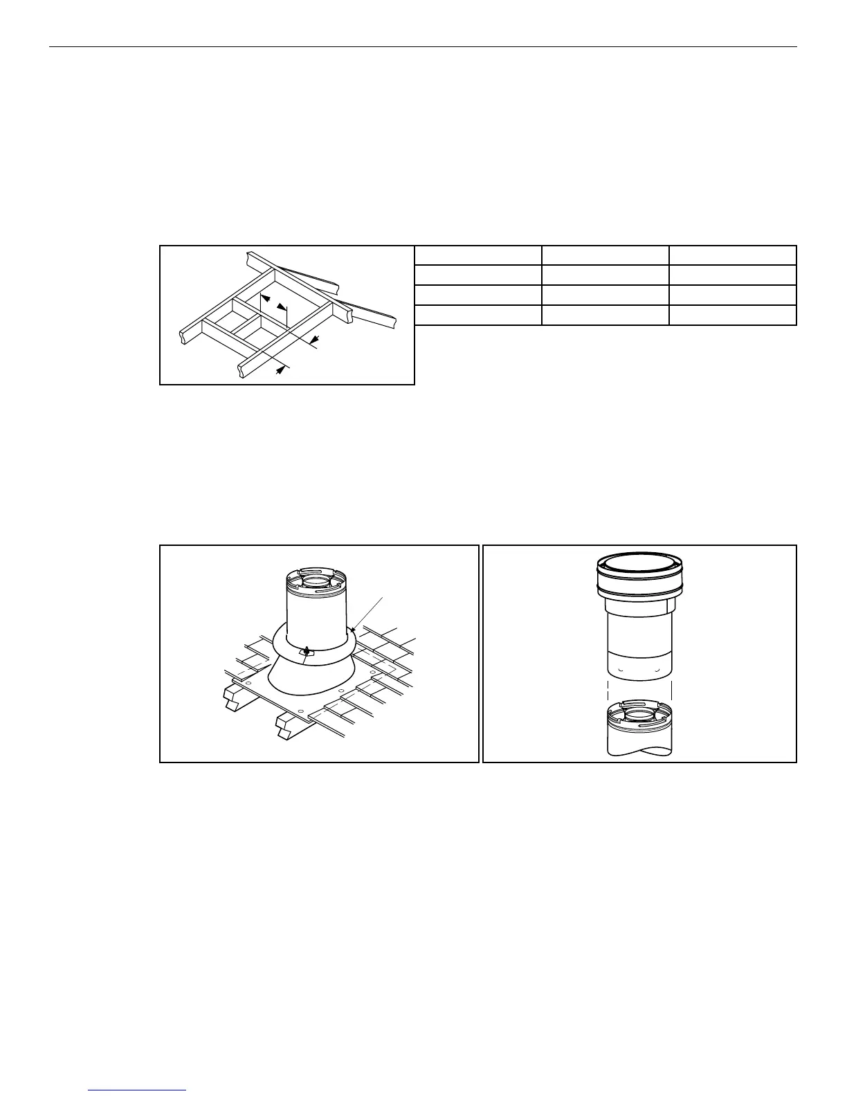 10. Frame the roof opening—Identify the location for the vent at the roof. Cut and/or frame opening (Table 16).