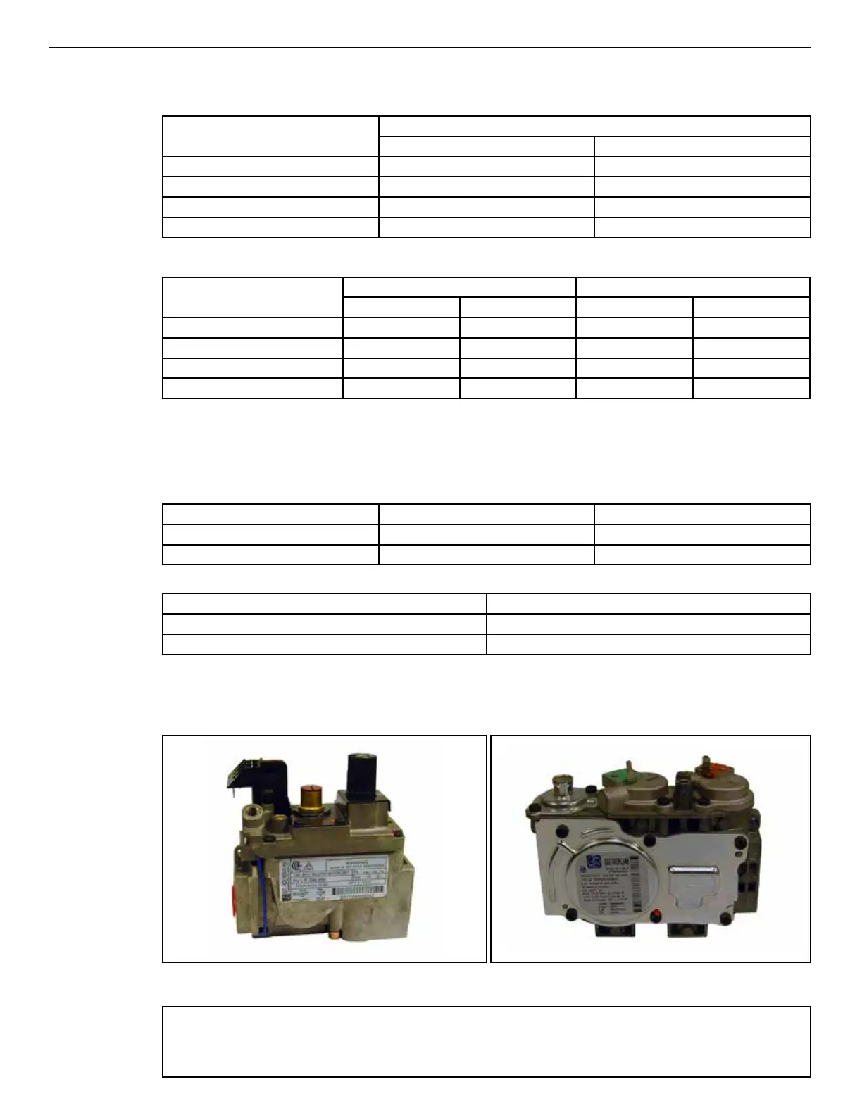 Table 1: Input Rate, Gas Valves