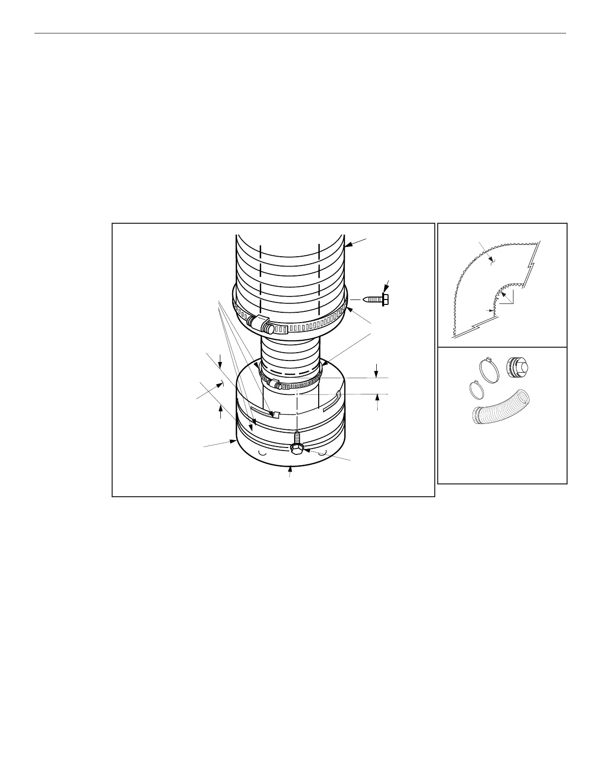 a. Install the large gear clamp loosely around the outer fl exible vent pipe, then push it back out of the way.