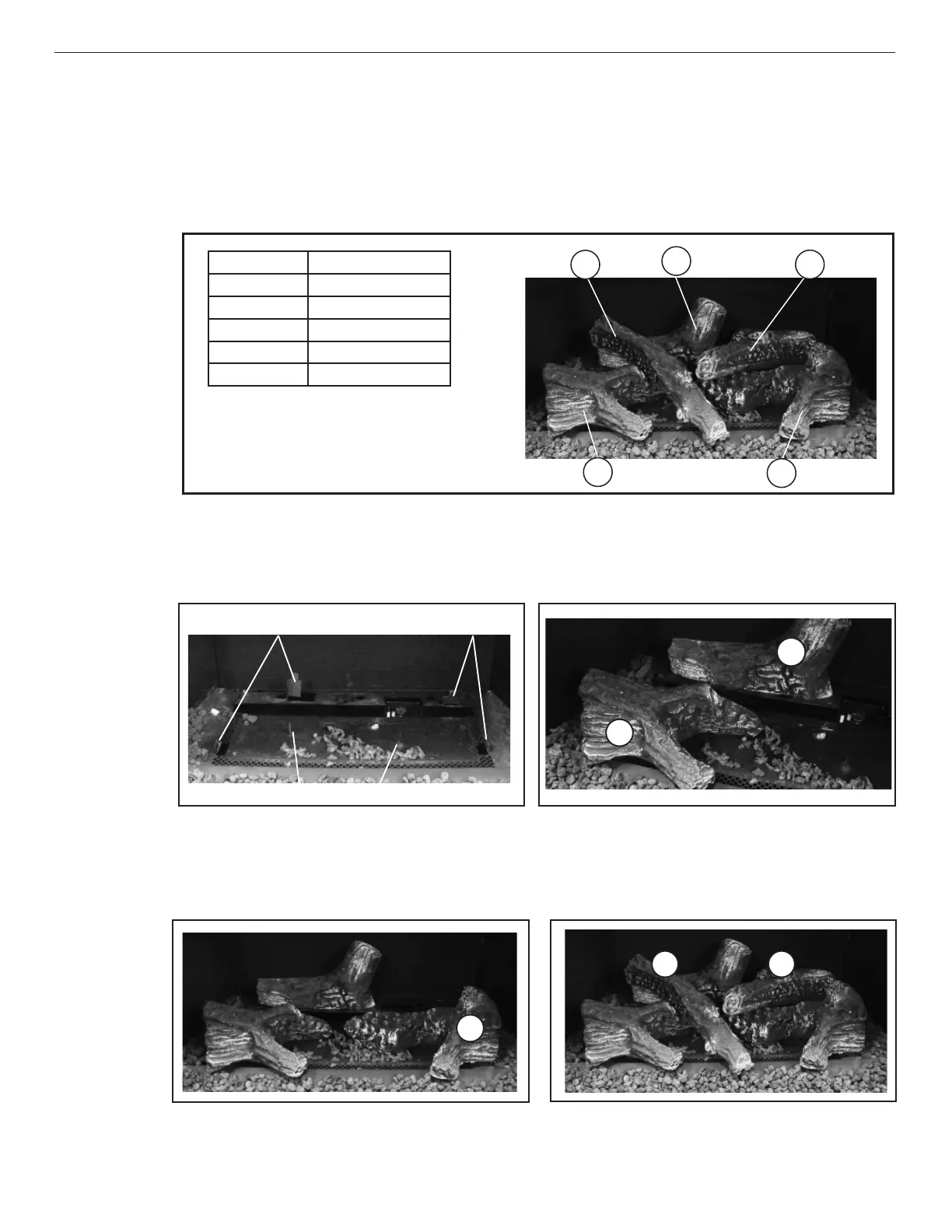 placement is critical to prevent sooting. Place the logs in the gaps between fl ame peaks, so they do not impinge the