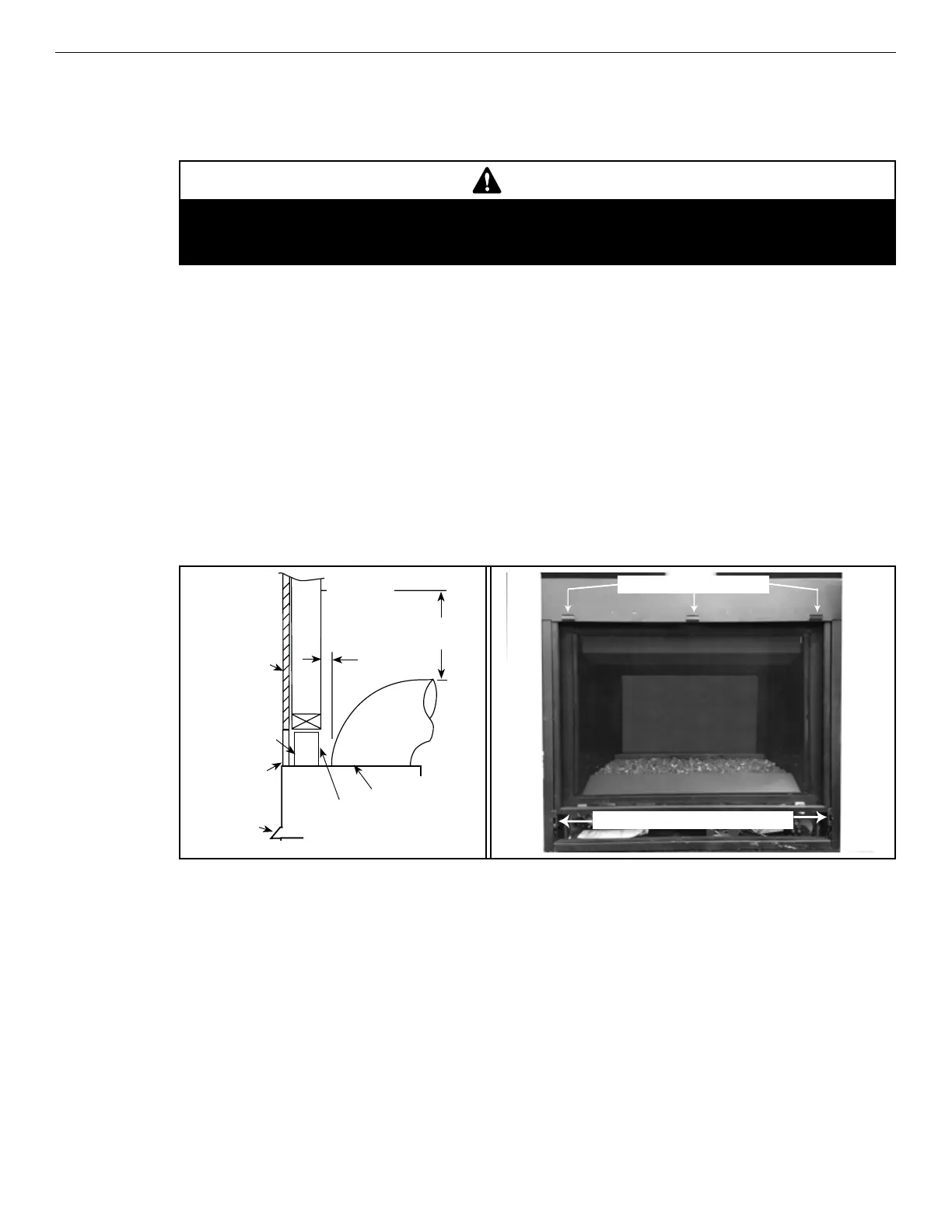 fireplace opening, the bottom edge of the finish material must be 5/8” above the top edge of the hood to allow