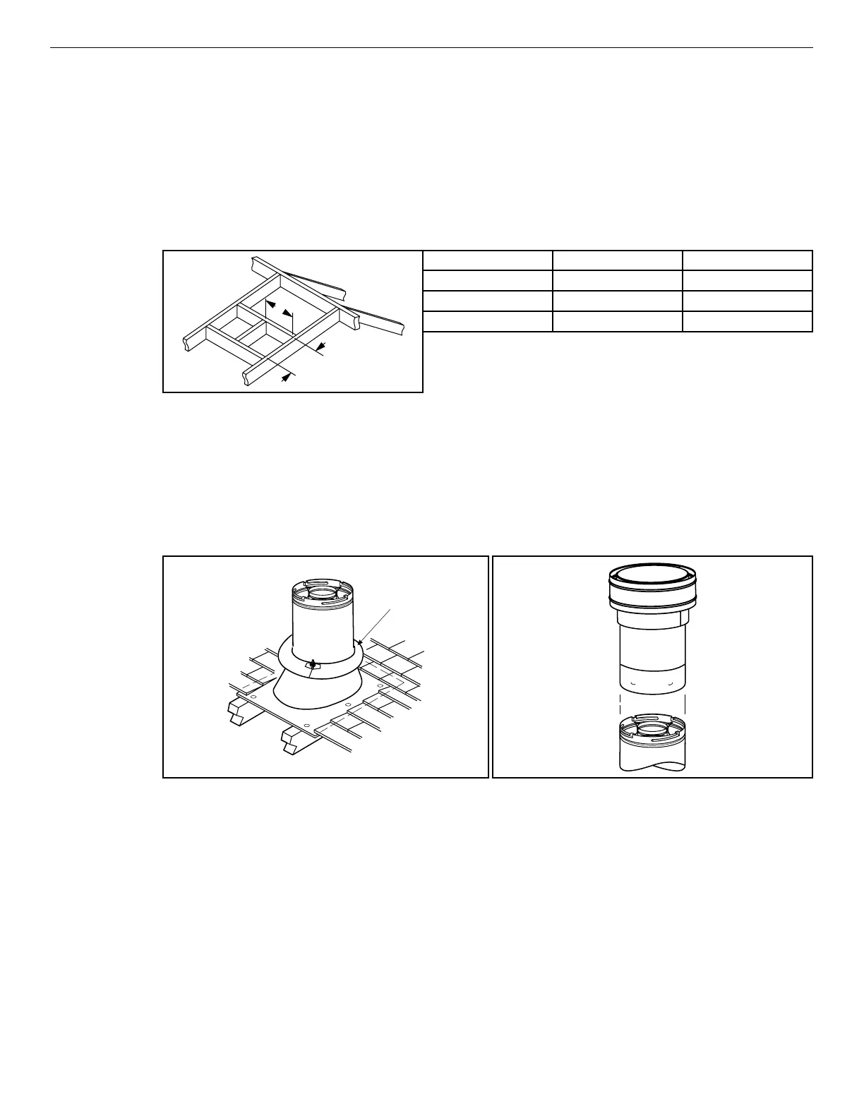 10. Frame the roof opening—Identify the location for the vent at the roof. Cut and/or frame opening (Table 16).