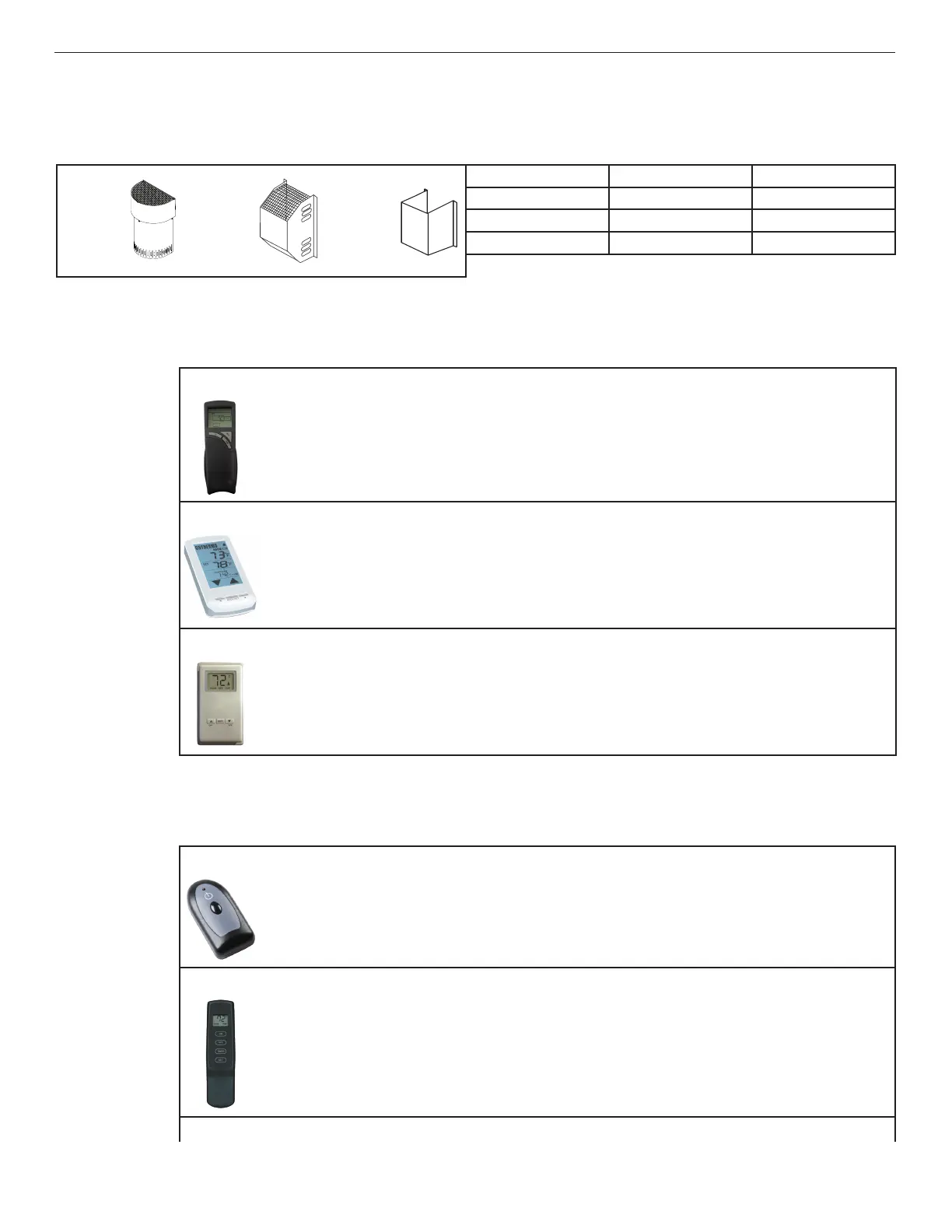 Table 46: ON/OFF and Timer Control Kits