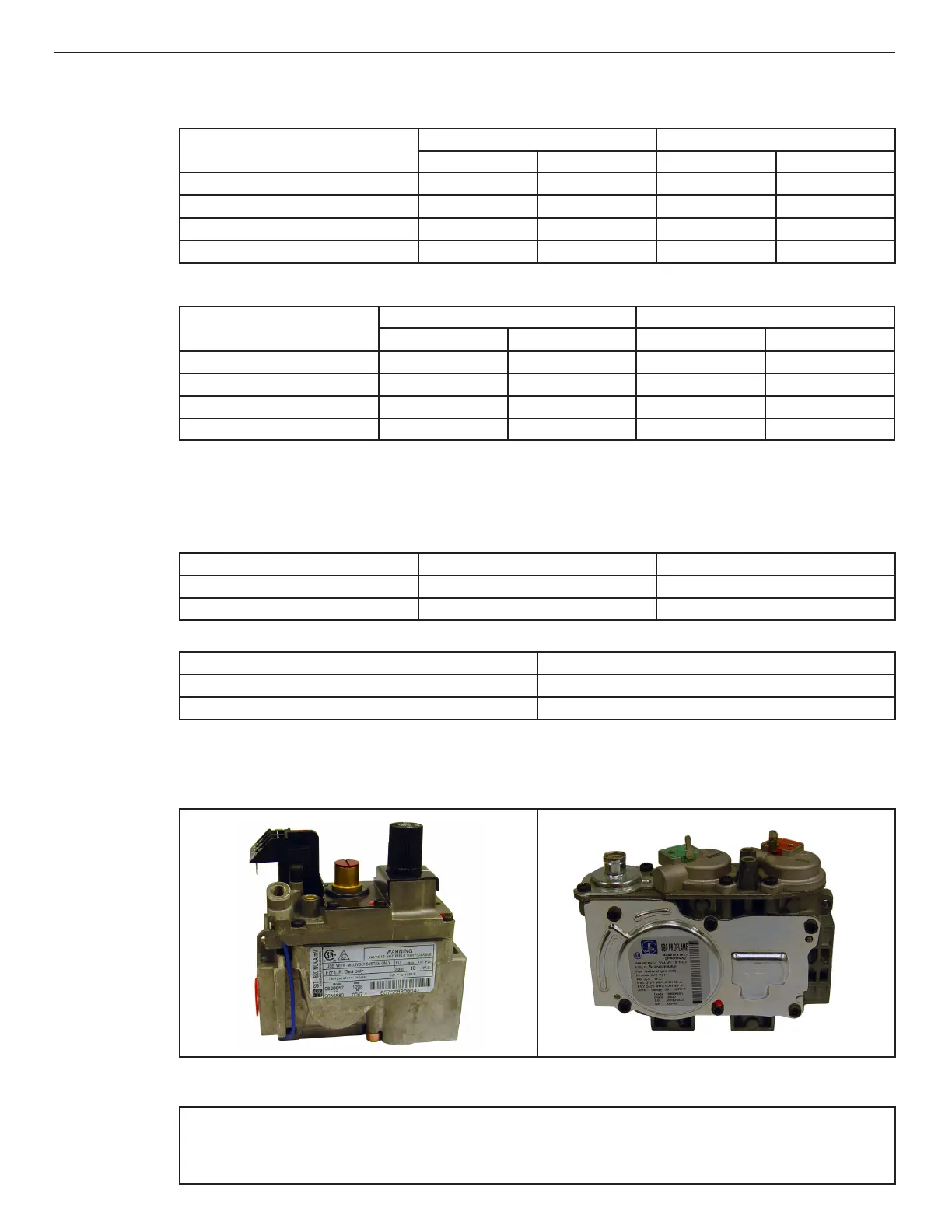 Table 1: Input Rate (BTU/HR), Gas Valves