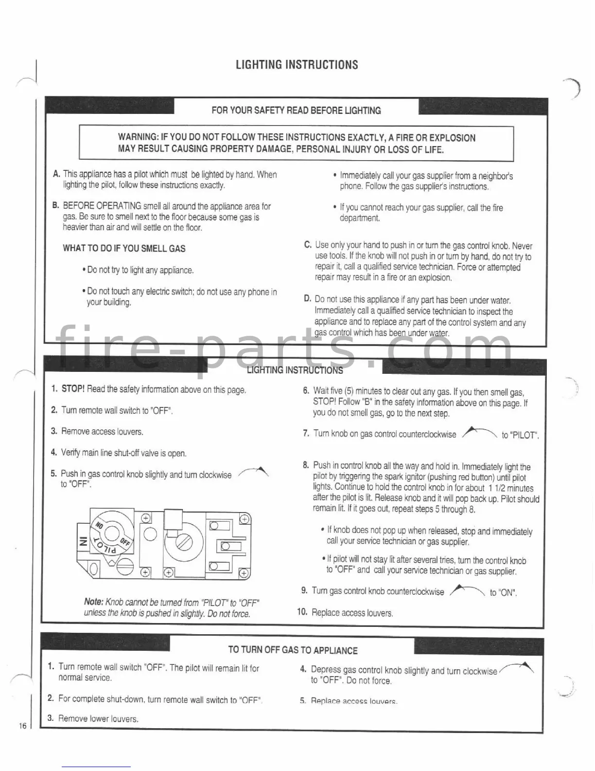 BEFORE OPERATING smell all around he appliance area for If you cannot reach your gas supplier, call the fire
