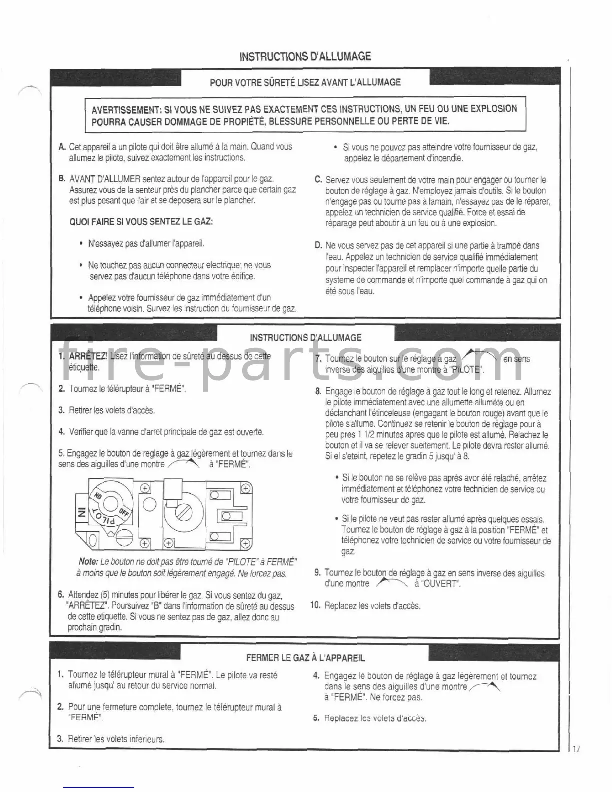 allumez le pilole, suivez exactement les instructions.