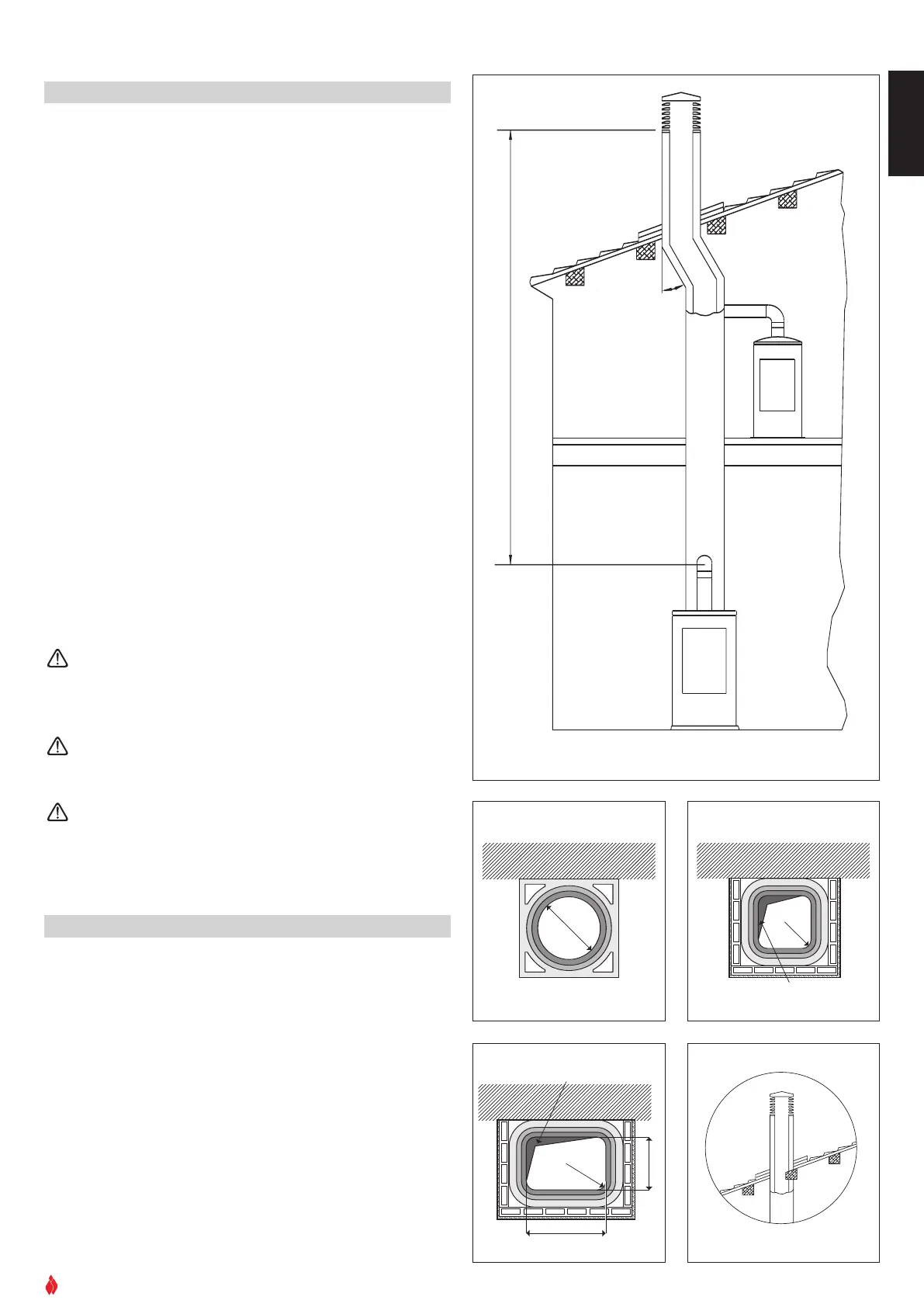 greater than the diameter of the flue pipe of the stove and at least 3.5