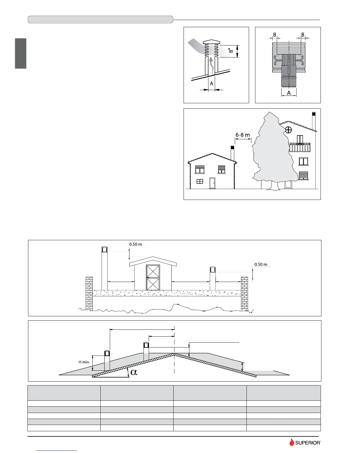 in (column H); if the distance is less than “A” the chimney stack must rise