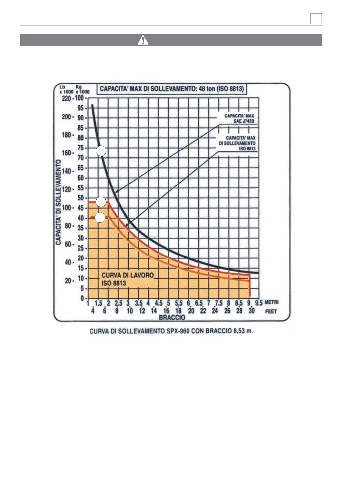 Exceeding working capacities (ref. to diagram below) means putting the machine stability and the
