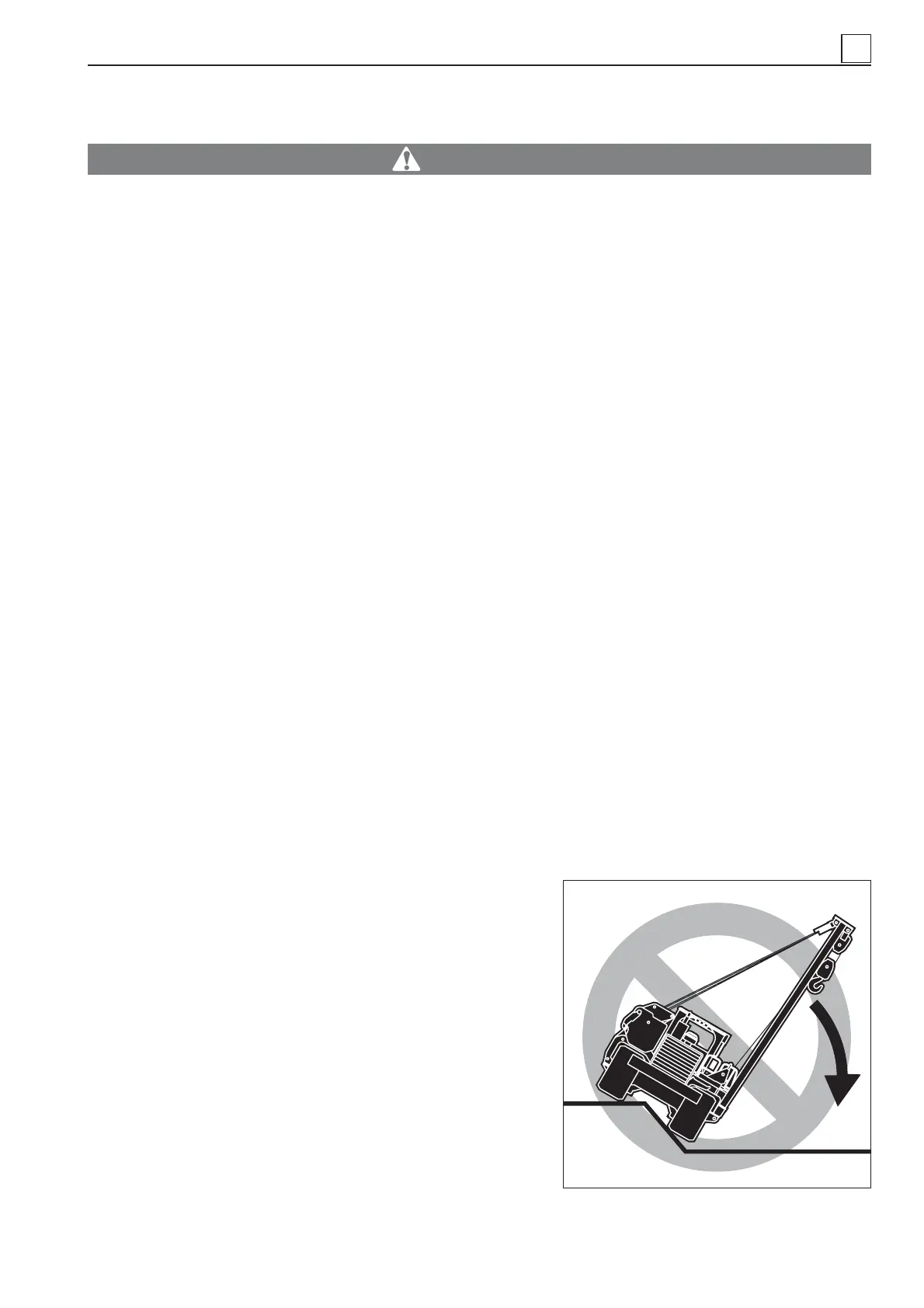 • Do not operate the machine close to the edge of a slope and cliff and near deep ditches. The ground