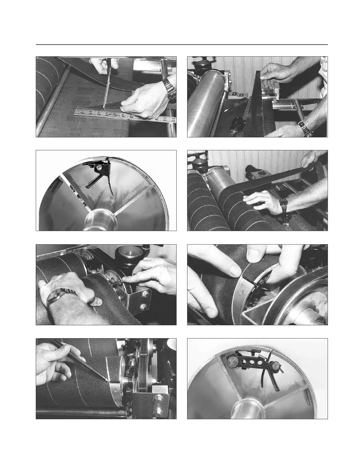 Fig. 12-d. Insert tapered end into outboard slot. Fig. 12-e. Wrap strip around drum without overlap.