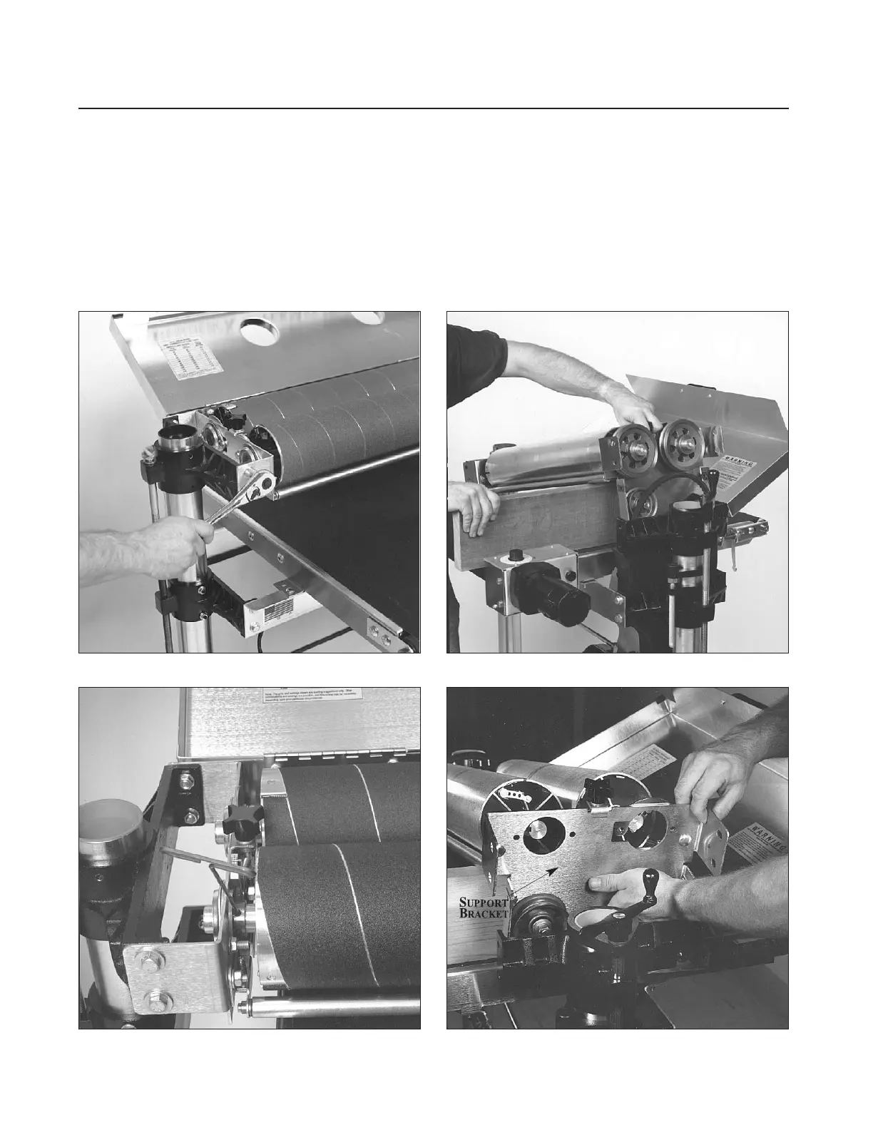 Fig. 33. Loosening drum bearing set screws. Fig. 34. Removing sanding drum support bracket.