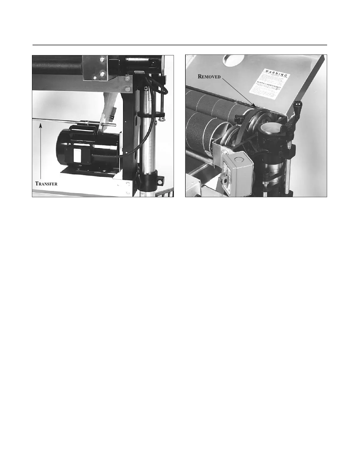 Fig. 37. Removing belt guard and transfer rod. Fig. 38. Removing main motor V-belt drive.