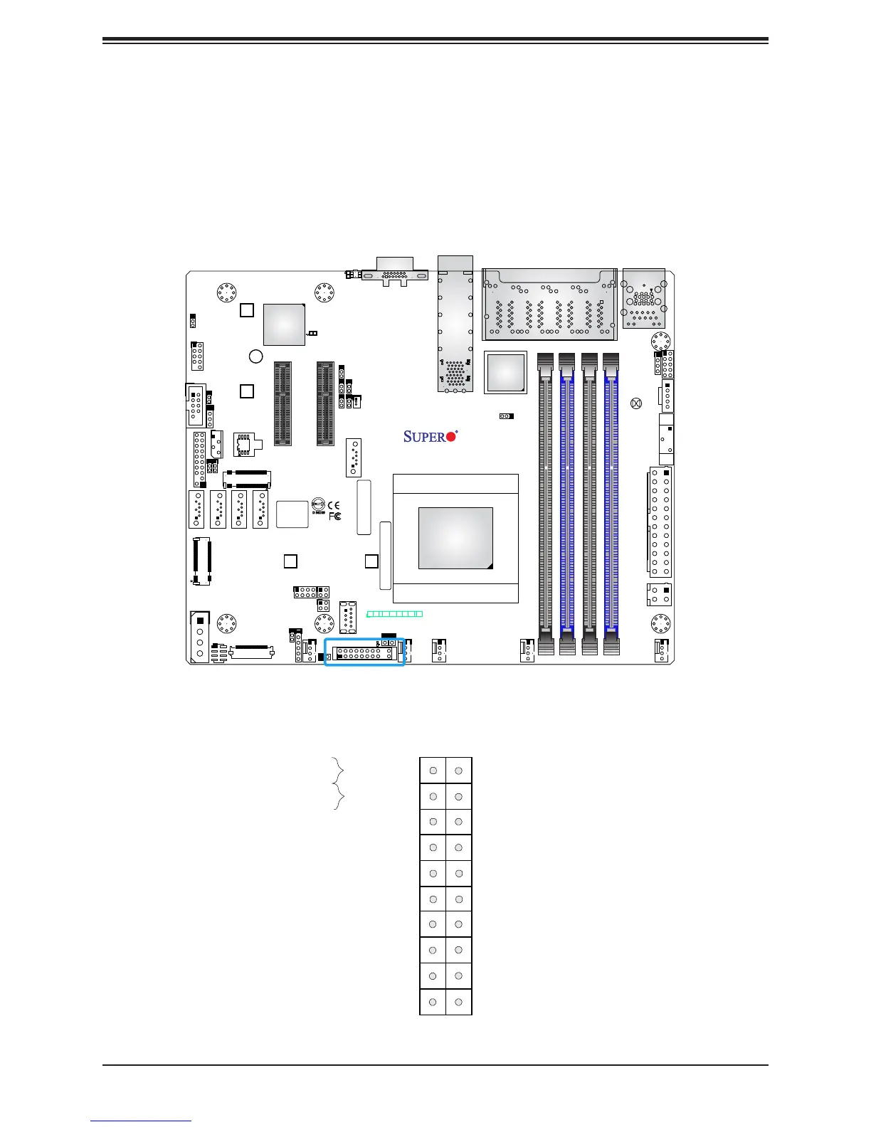 JF1 contains header pins for various buttons and indicators that are normally located on a