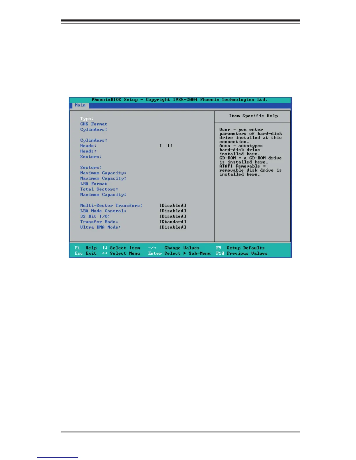 This option allows you to select the type of IDE hard drive. The option: Auto