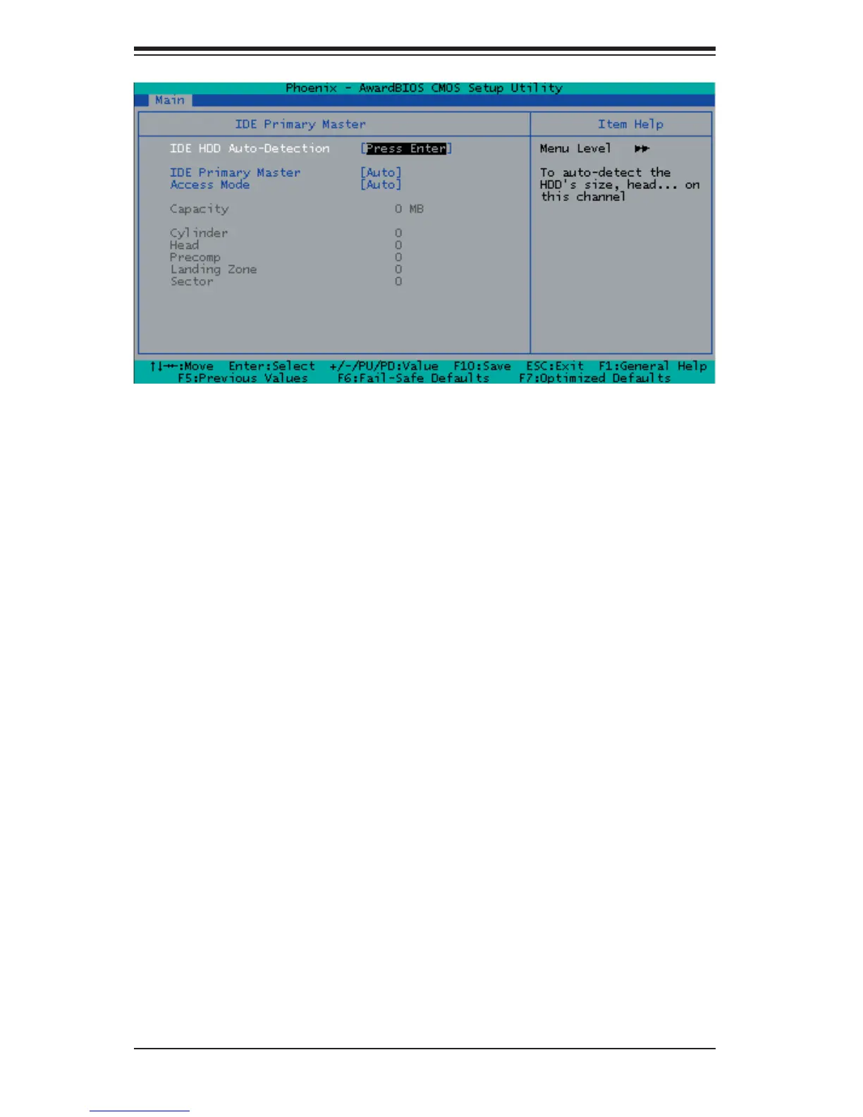 device installed in the IDE Primary Master slot. The options are None, Auto