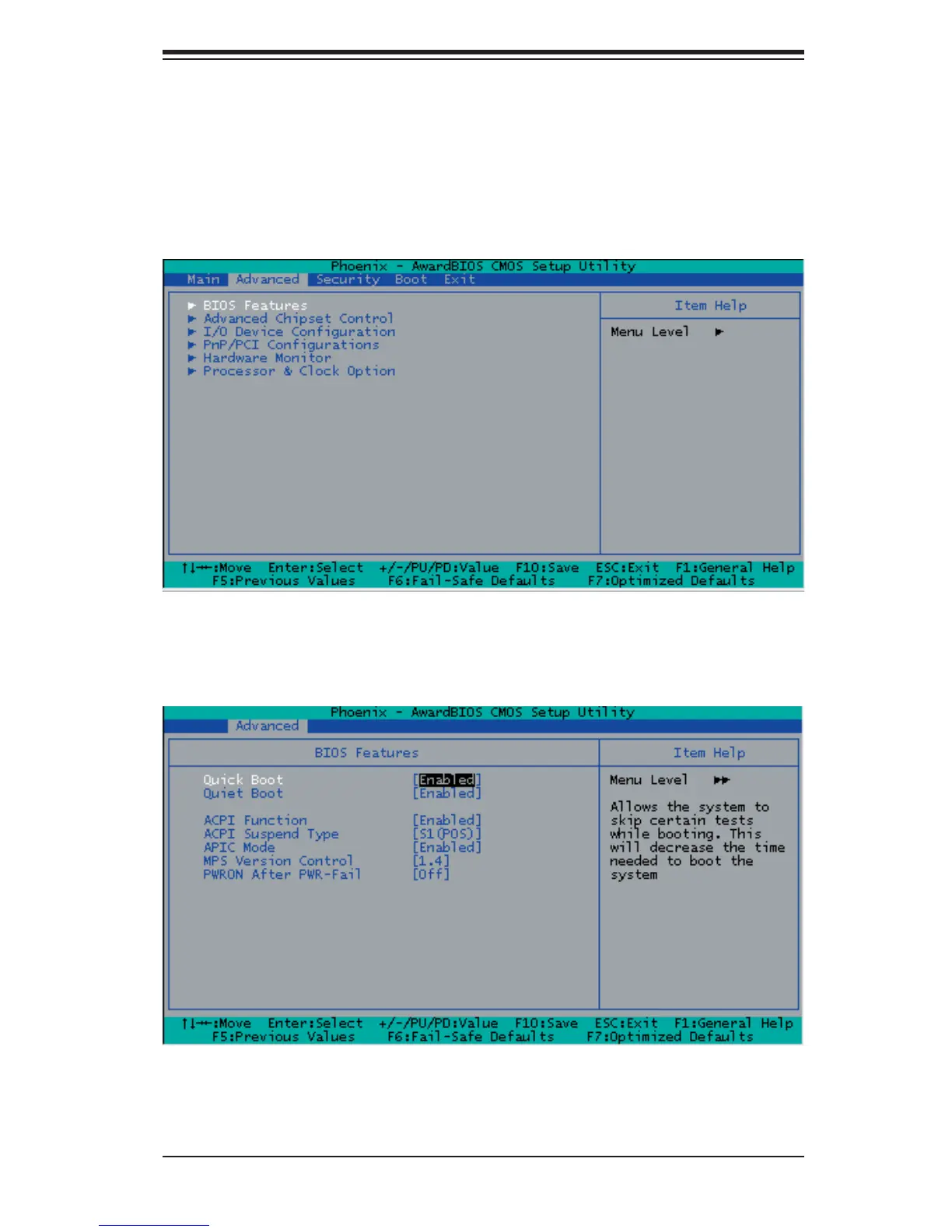 When the item of Advanced BIOS Features is highlighted, press the <Enter> key