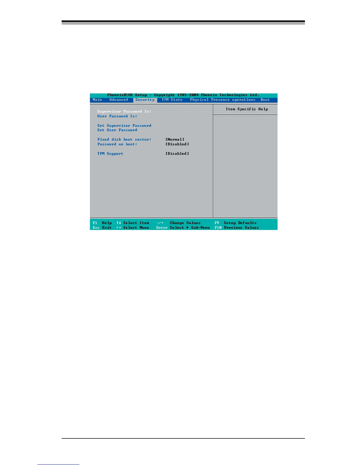 All Security BIOS settings are described in this section.