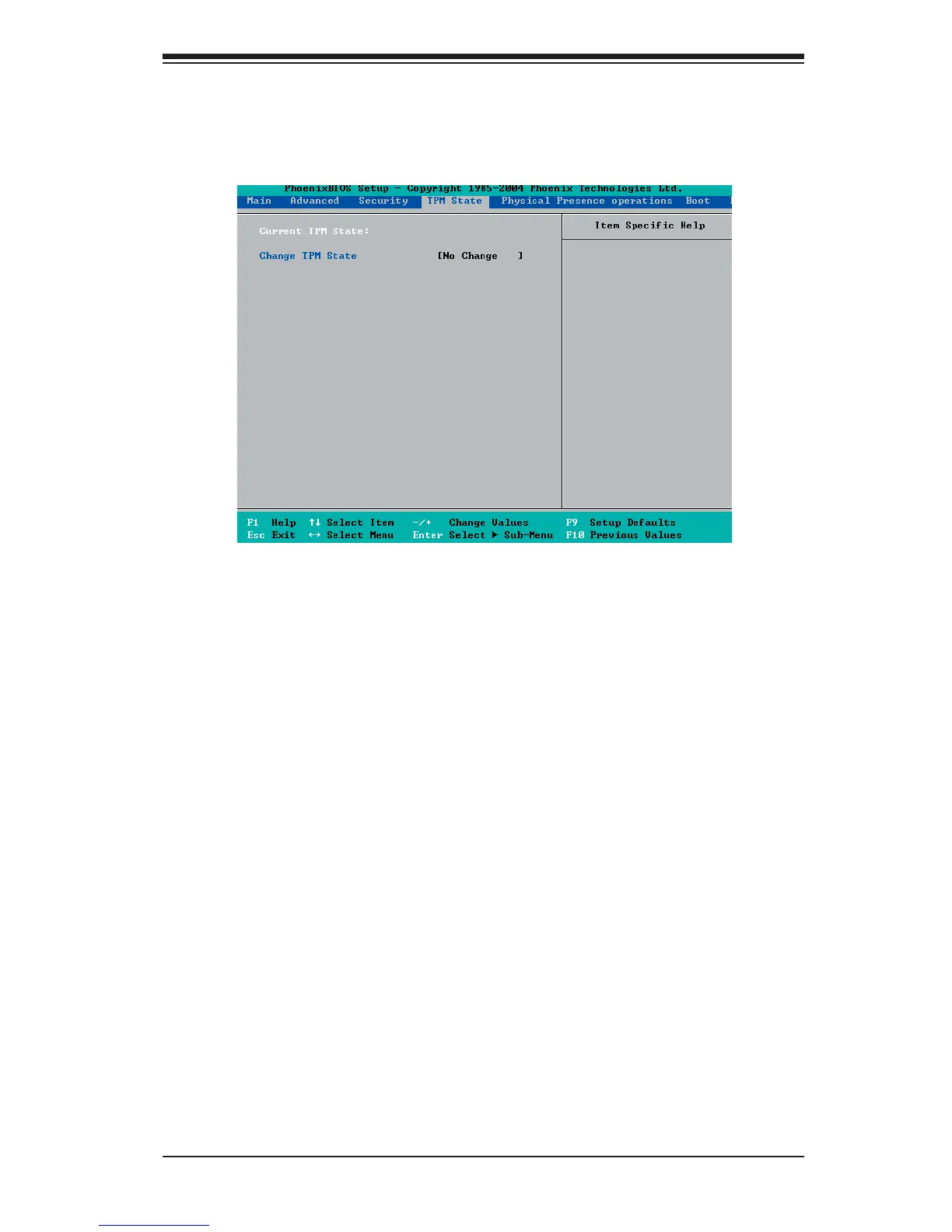 & Disabled to disable the function of TPM support. If No Change is selected, no