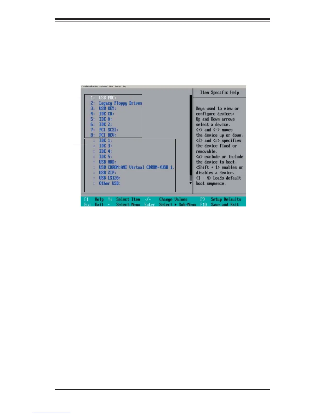 details on how to change the priority of boot order of devices in the Item Specifi c