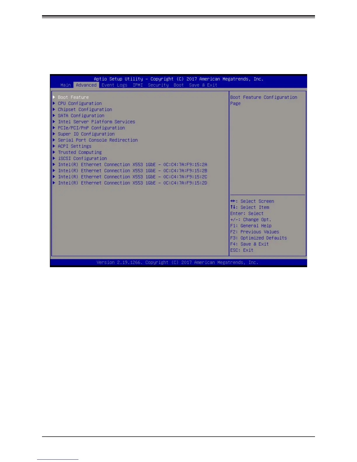 Use this tab page to set some boot, power, CPU, SATA, server ME, and input/output settings.