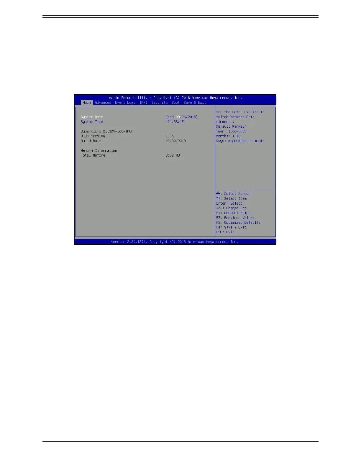 The date's default value is the BIOS build date after RTC reset.