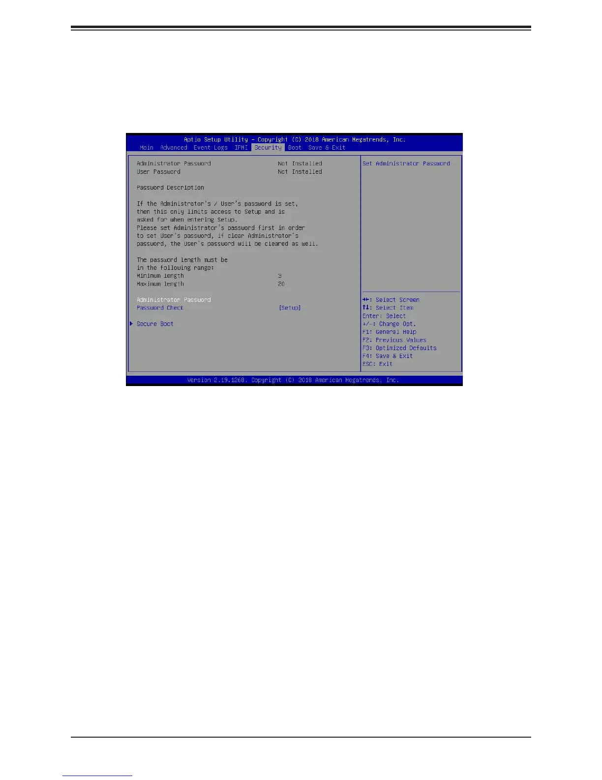 Use this feature to set the administrator password which is required to enter the BIOS setup