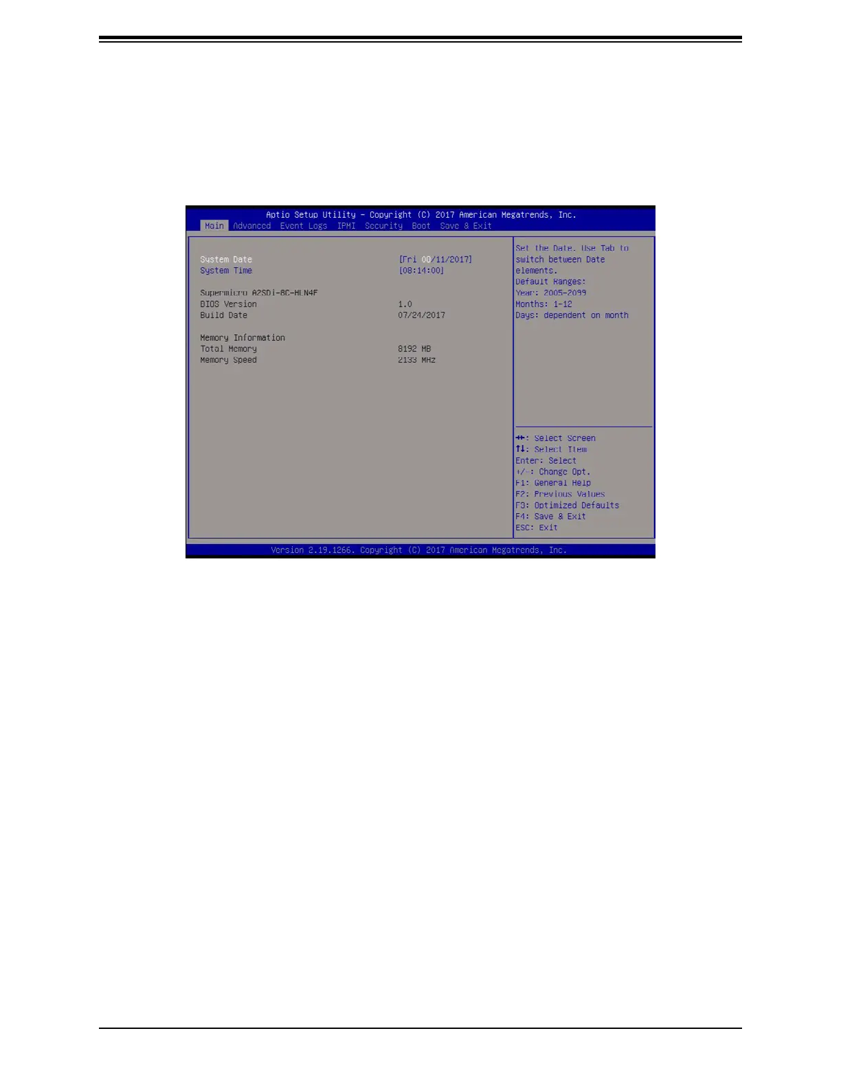 date's default value is the BIOS build date after RTC reset.
