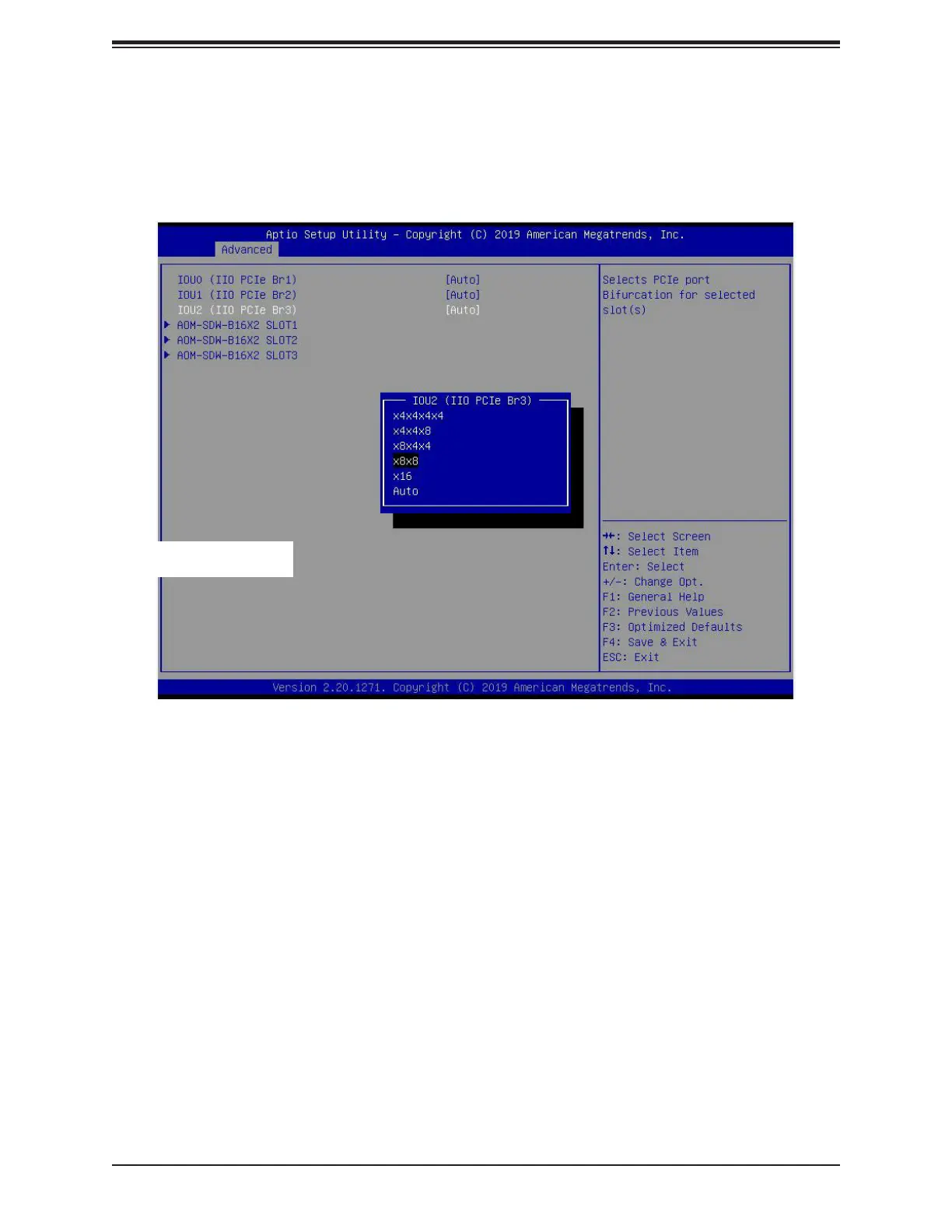 > CPU Conguration. The setting for IOU2 is x8x8 or x16. The setting for IOU1 is Auto.