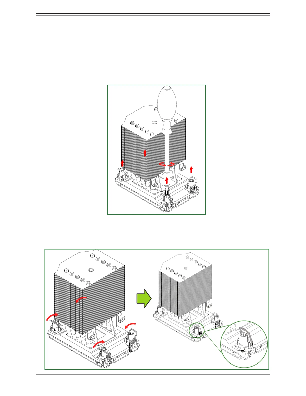 1. Use a T30 screwdriver to loosen the four PEEK nuts on the heatsink in the sequence of