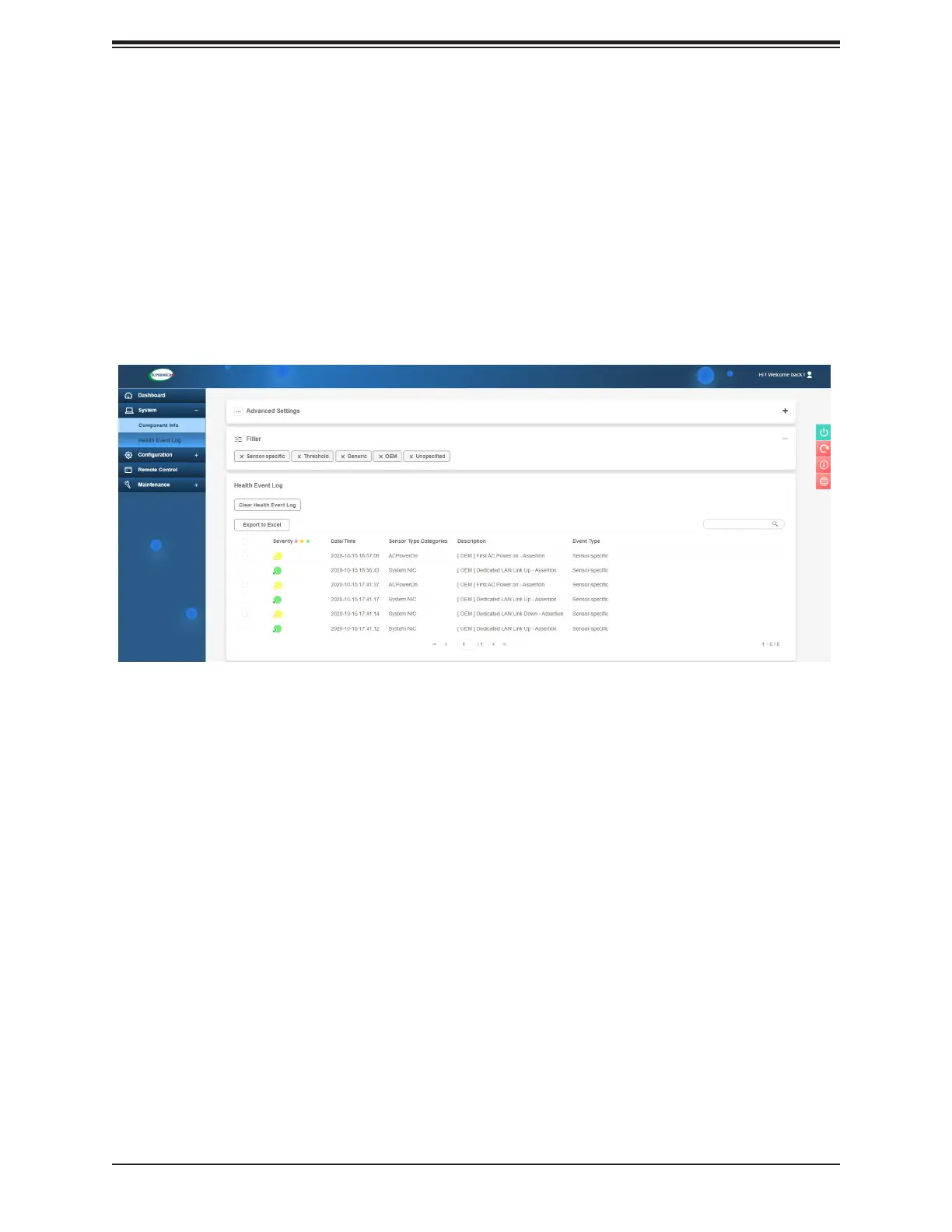 2. Click the Server Health tab, then Event Log to verify an IERR error.