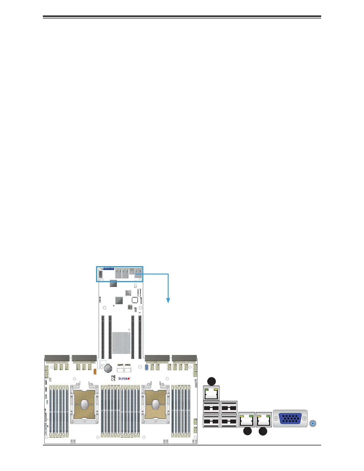 on the I/O backplane. Additionally, an IPMI-dedicated LAN, located above USB 1/2 ports