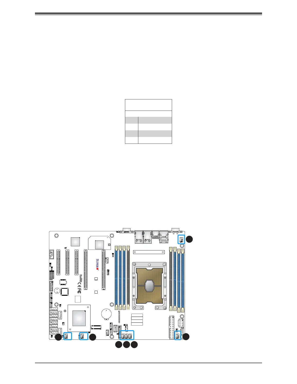 There are seven 4-pin fan headers (FAN1 ~ FAN5, FANA ~ FANB) on the motherboard. All