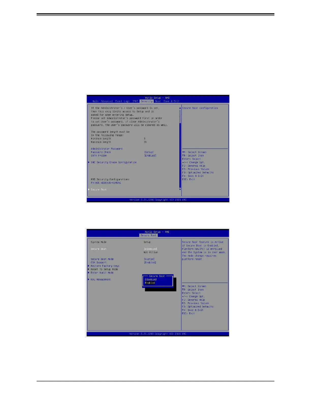 When the screen above displays, select Secure Boot and press <Enter> to access the menu
