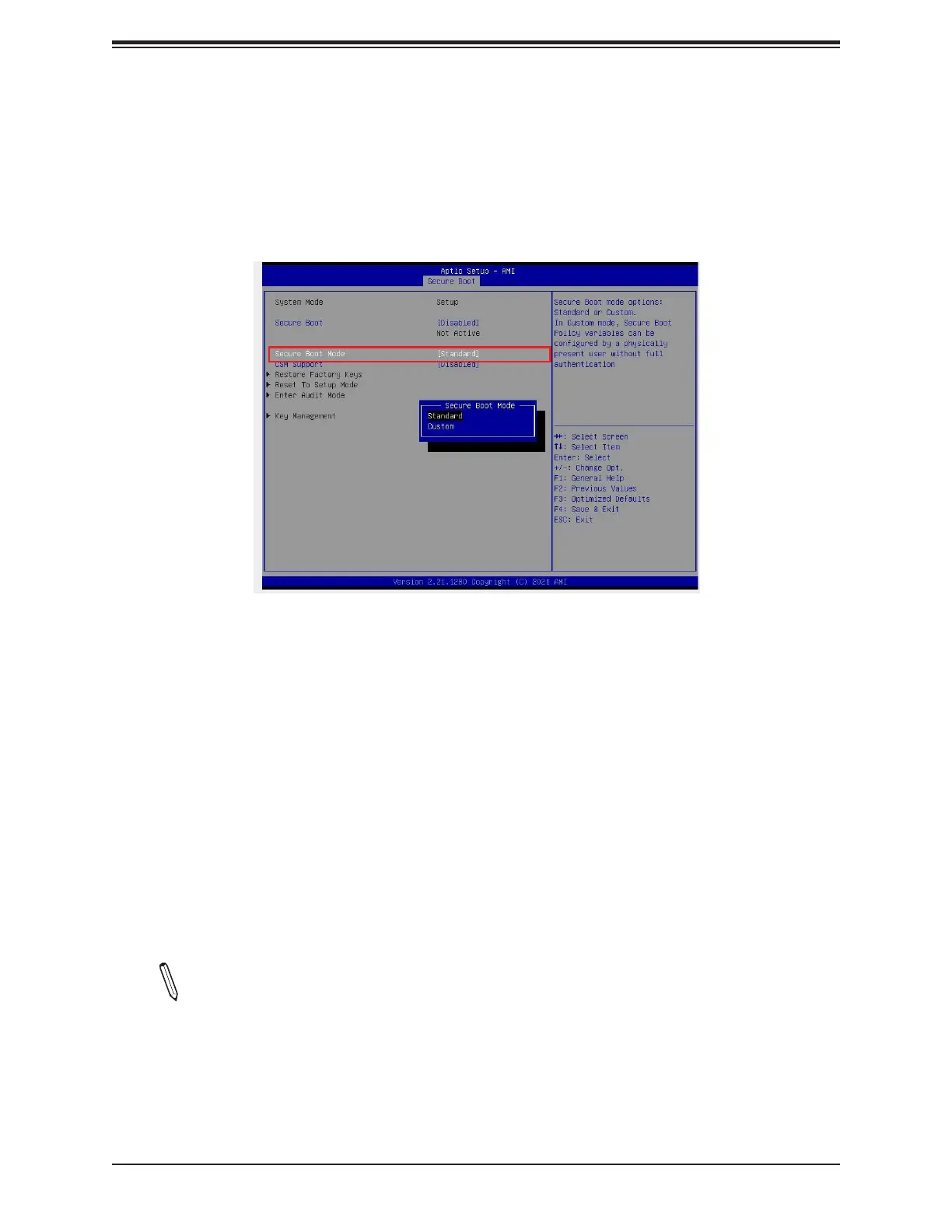 Note: The Key Management menu will not be available when Secure Boot Mode is
