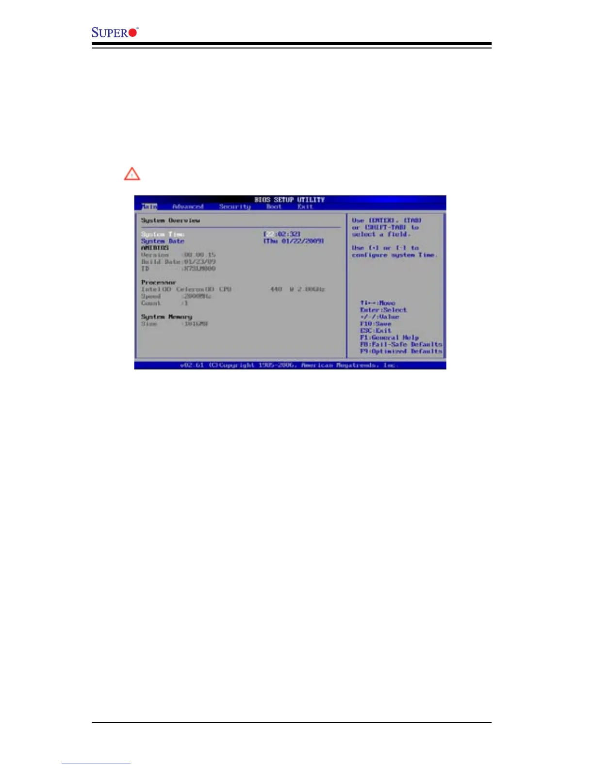 When you rst enter the AMI BIOS Setup Utility, you will enter the Main setup screen.