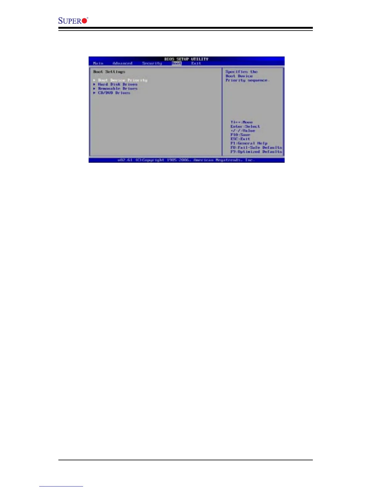 This feature allows the user to specify the sequence of priority for the Boot Device.