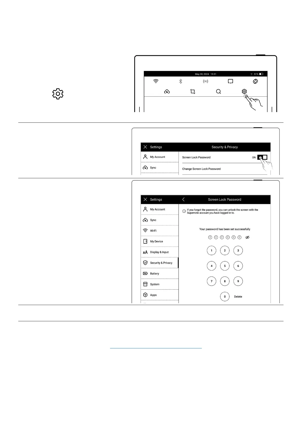 *NoteYou are able to unlock the screen via log in Supernote Account if you forget the