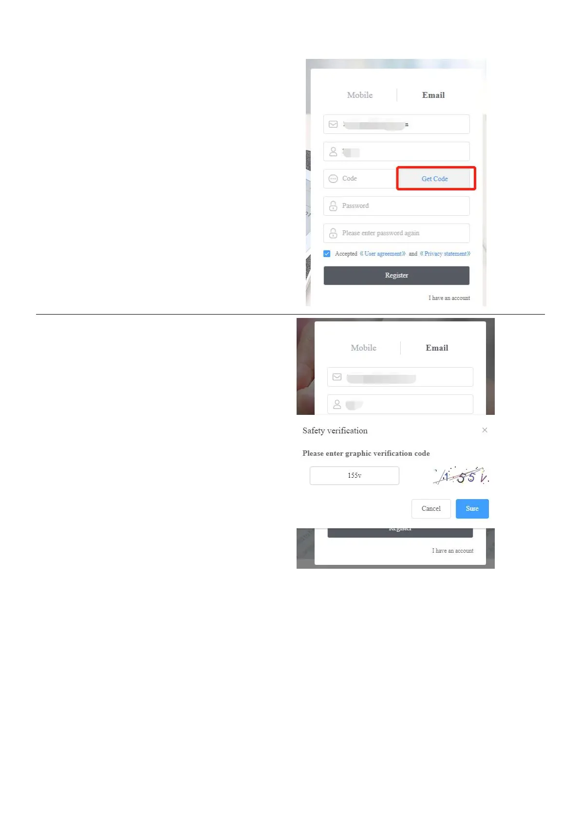 verification code and click Sure