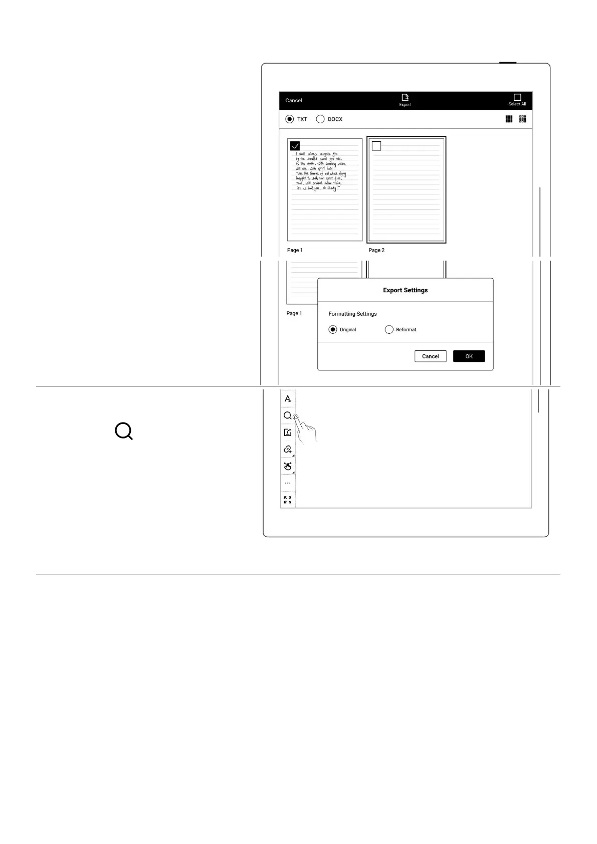 Note: The following actions can affect handwriting recognition efficiency: copying,