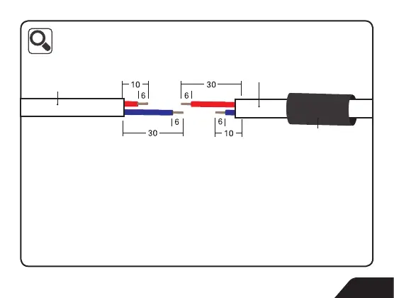 wie gezeigt und entfernen Sie die Ummantelung 6 mm breit. Das blaue Kabel verbindet