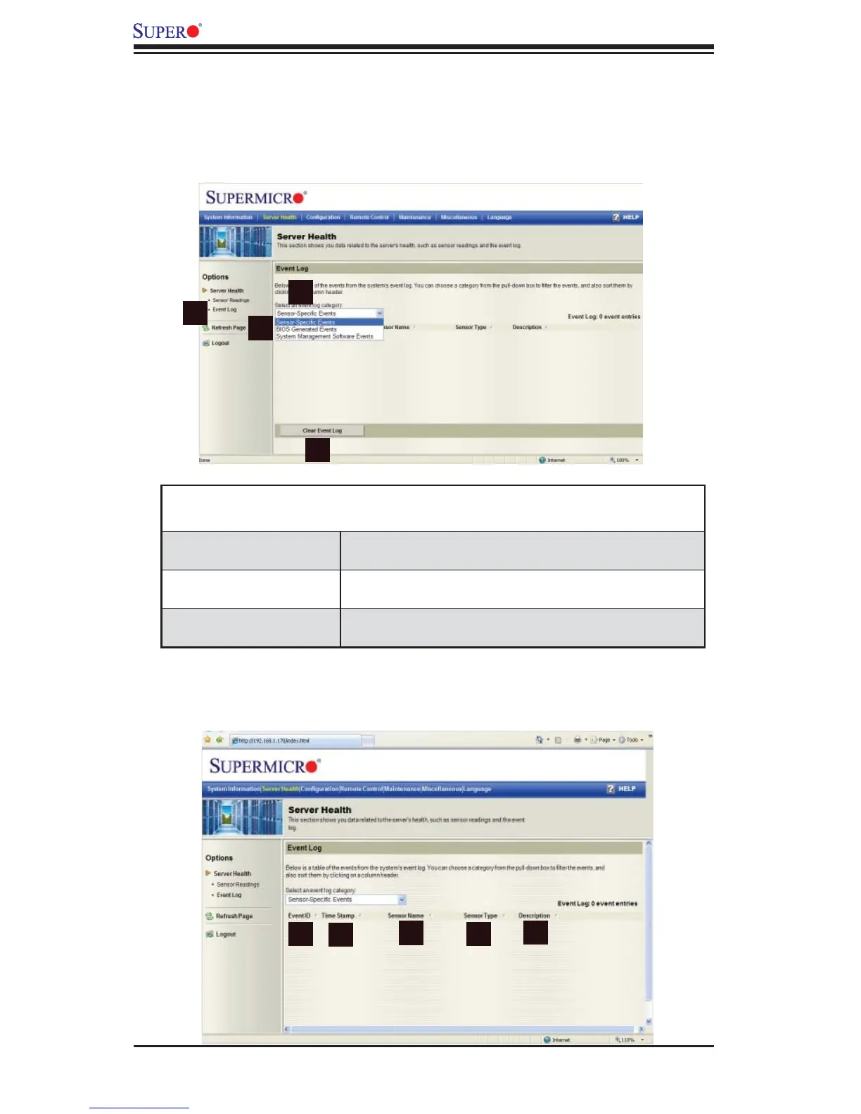 Sensor-Specifi c Events This item displays the event log for sensor-specifi c