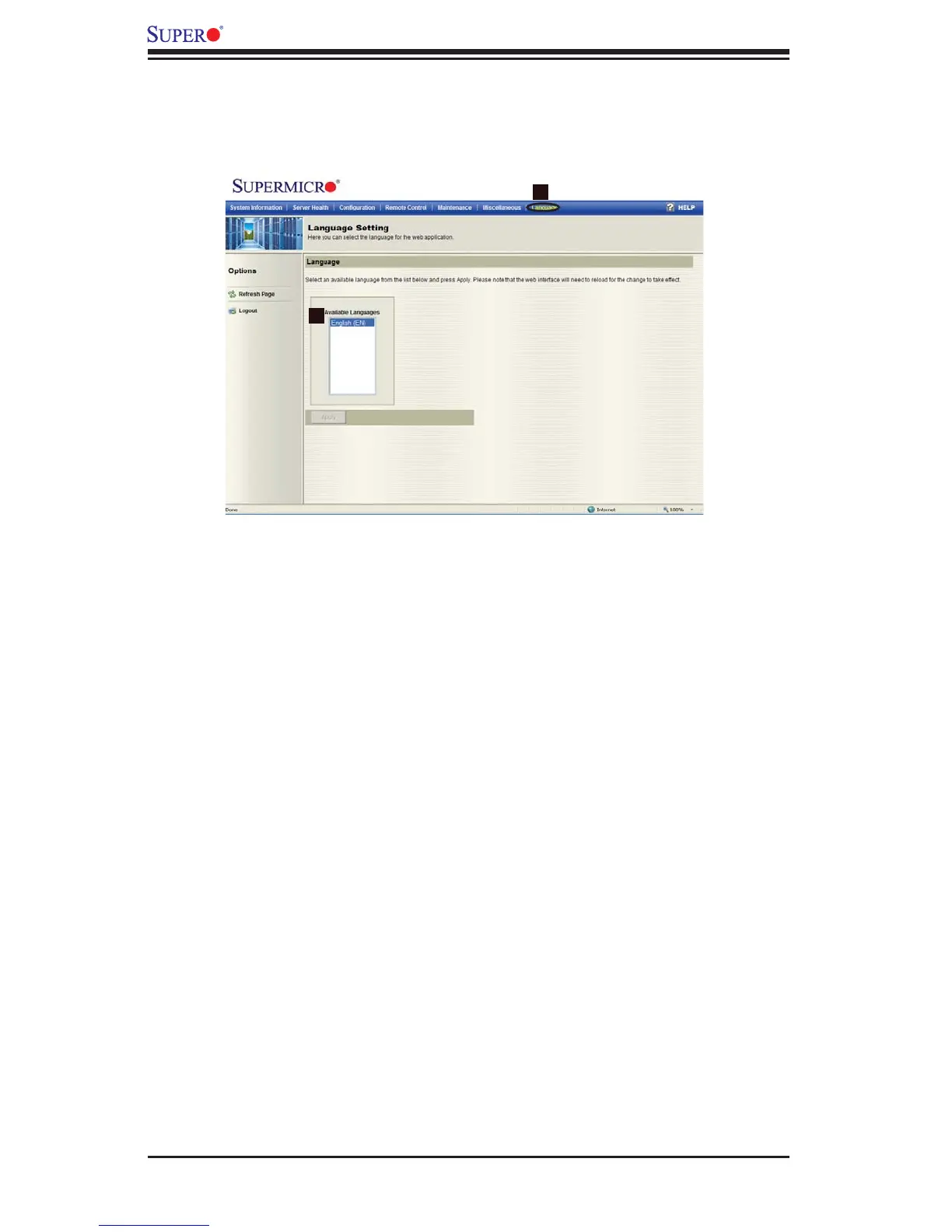 Click on the Language icon (1) in the Menu bar to display the Language page as
