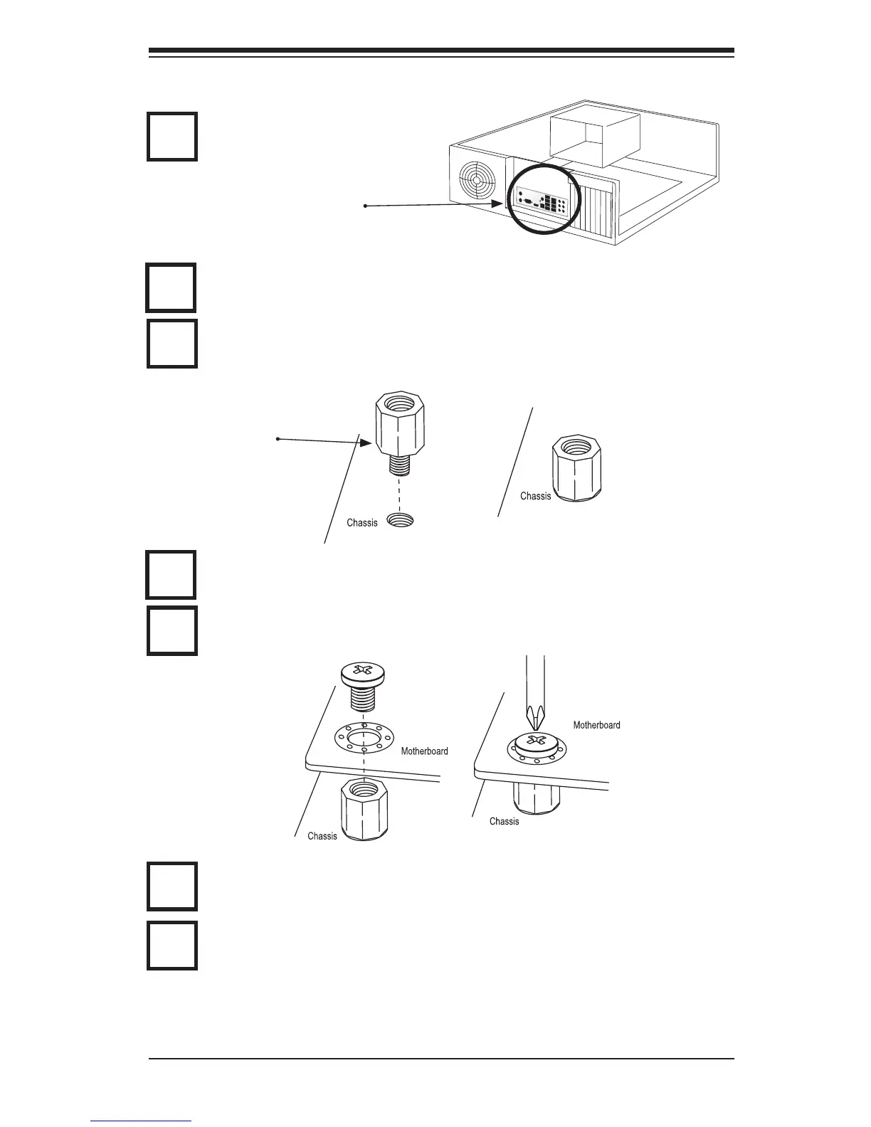 chassis as needed. Align the mounting holes on the motherboard against the